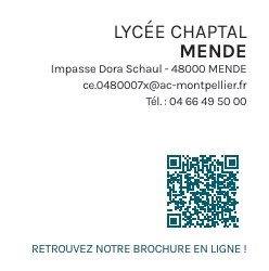 - JPO du Lycée Chaptal à Mende : Samedi 21 mars 2026 9h à 12h